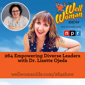 This week on the Well Woman Show, I interview Dr. Lizette Ojeda. She s a career psychologist and behavioral scientist specializing in an evidence-based intersectional approach to help diverse leaders do their best work as a whole self. She has been recognized by the Houston Business Journal’s 40 under 40 and has been honored with Fellow status by the American Psychological Association for her outstanding contribution to diversity initiatives on a national level. Her mission is to empower diverse leaders to unlock their best, most confident selves at work so they can have more success and less stress. She’s also an Associate professor Texas A&M University.