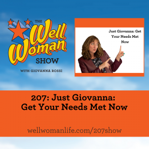 On the Well Woman Show this week, we are discussing the importance of getting our needs met. As women, getting our needs met has been something society has taught us is secondary. First and foremost we should be concerned with nurturing others, whether that’s raising children, taking care of parents, or just simply playing the nurturer role at work, in the community, or with friends. Second, we should be concerned with how we look, being sure to be pleasing to others, particularly men. If we are women AND carry other identities based on race, ability, or sexual orientation then the requirement that we put our needs on the back burner multiplies. So it’s not surprising that so many of us have ongoing unmet needs, which show up as thoughts and feelings, which ultimately guide our actions in life.